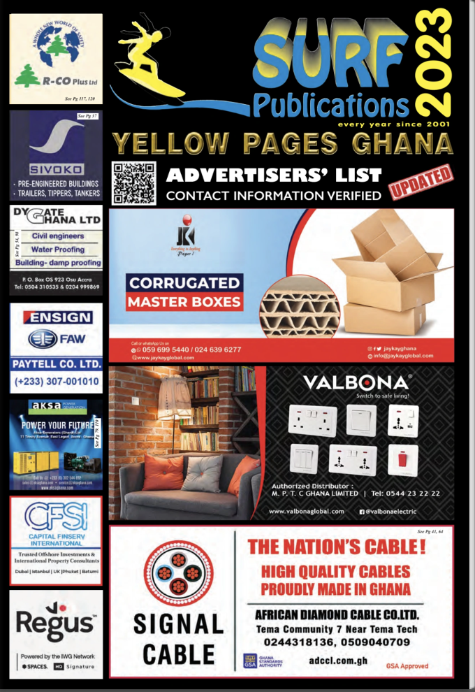 Surf Publications Ghana Limited, established in the year 2000, is a media and publishing firm with several years’ experience of publishing The Surf Yellowpages Directory annually, and Surfxpress, its subsidiary, uses creative concepts which go beyond the usual known forms of branding using the latest facilities and new approach to branding and advertising.